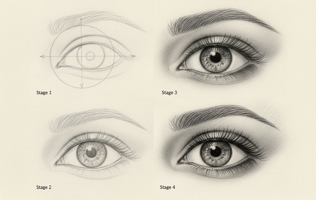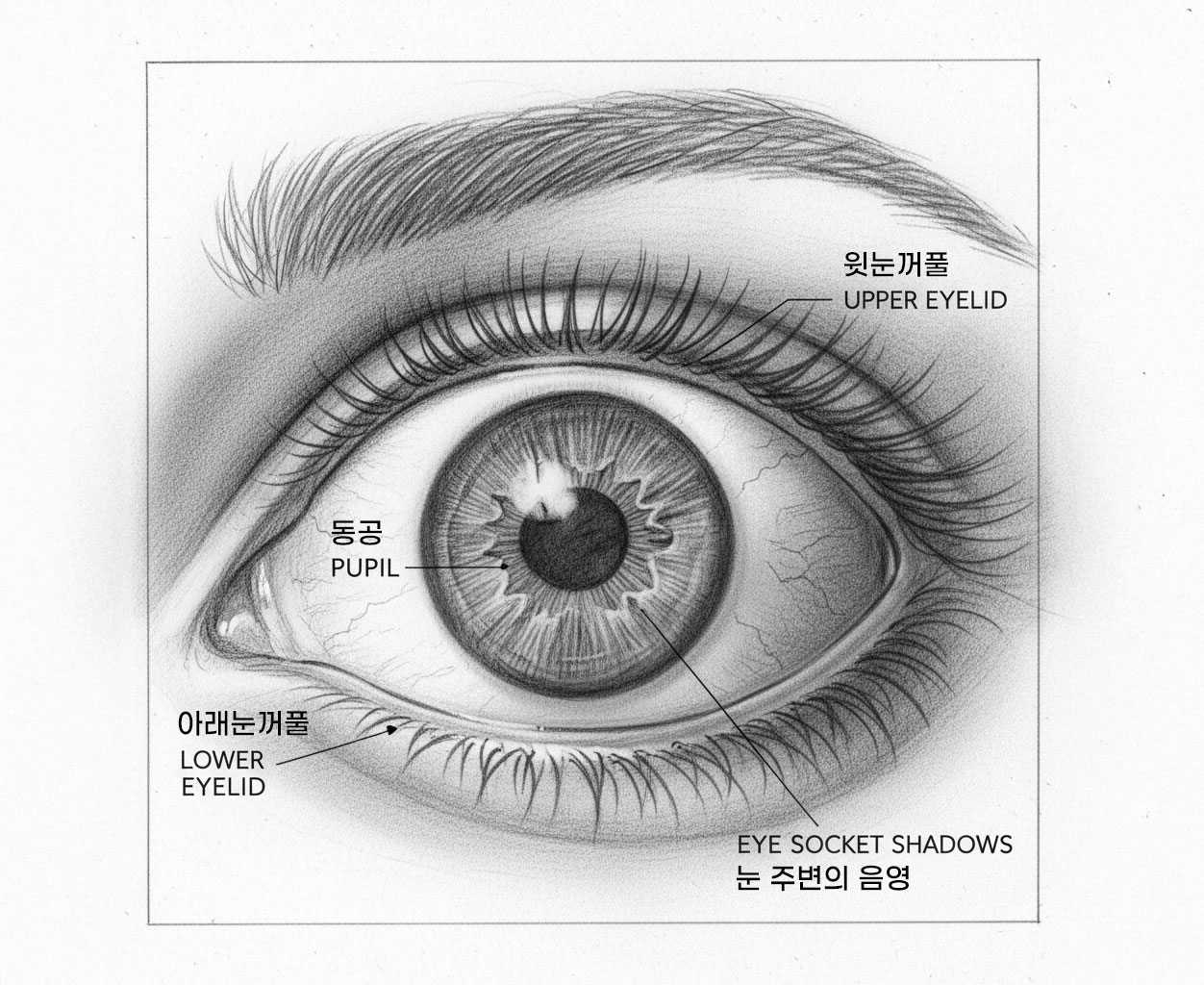 많은 초보자들이 눈을 그릴 때 홍채와 동공만 신경 쓰고 눈썹, 눈꺼풀, 그리고 눈 주변의 섬세한 근육과 음영을 간과합니다. 하지만 이러한 요소들이 모여야 비로소 살아 있는 눈을 표현할 수 있습니다. 눈 하나를 제대로 그리는 기술은 인물화 전체의 수준을 결정짓는 핵심 요소입니다.