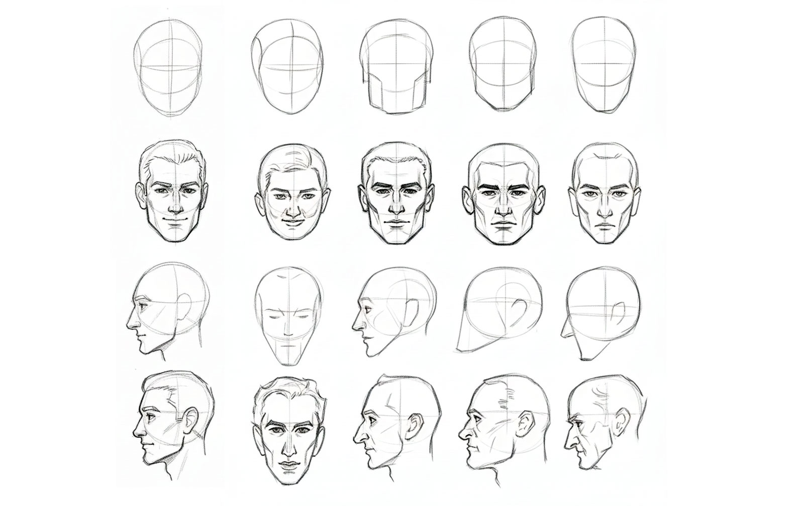 기본 비율과 구조를 익힌 뒤에는 다양한 얼굴형과 나이, 표정을 연구해 보는 것이 좋습니다. 아이, 청년, 노인의 두상 비율은 조금씩 다르고, 피부와 주름, 근육의 긴장도 역시 달라집니다. 같은 분할선과 중앙선을 사용하더라도 어느 부분을 강조하느냐에 따라 완전히 다른 인물이 탄생합니다.